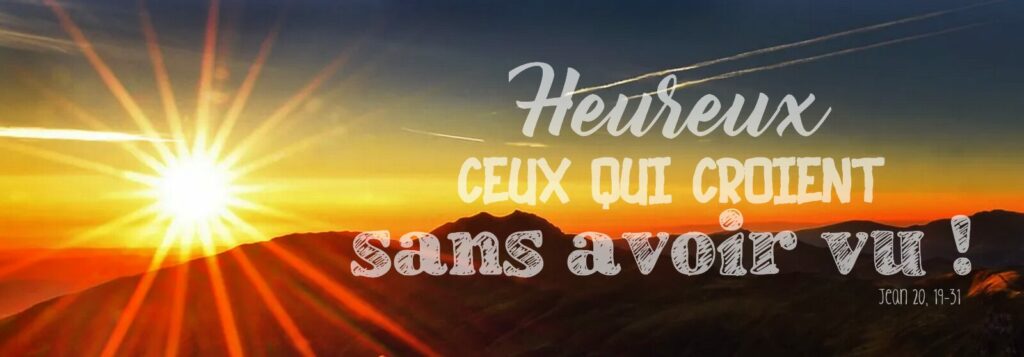 Ce dimanche est marqué lui-aussi par un évangile de la résurrection (Jean 20, 19-31) : Jésus apparaît auprès de ses disciples le soir du dimanche après sa mort, mais Thomas, absent, reste incrédule jusqu’à ce que Jésus apparaisse le dimanche suivant et l’interpelle : « Heureux ceux qui croient sans avoir vu ! » (voir les lectures du jour sur le site AELF). On l’appelle d’ailleurs « Dimanche de Thomas » dans les rites byzantin et copte.